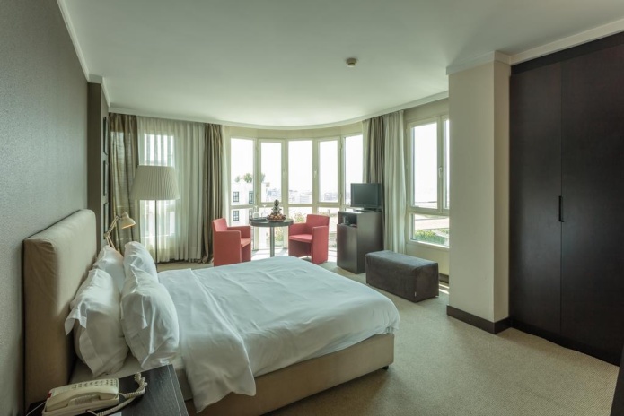 • Угловой номер Делюкс — 28 м², 1 двуспальная кровать и 1 диван-кровать, максимальное размещение 3 гостя
