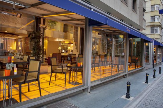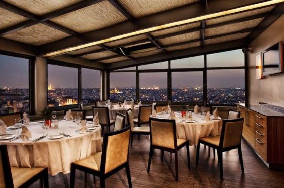 В ресторане с панорамным видом на площадь Таксим сервируют блюда интернациональной кухни и турецкие вина. Кроме того, гости отеля могут расслабиться в баре, где подают коктейли и закуски, а также играет живая фортепианная музыка.