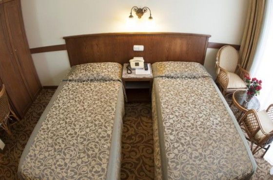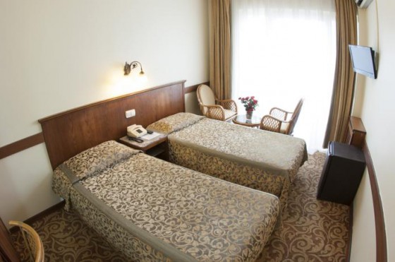 Всего в отеле 80 номеров. Во всех номерах кондиционер, спутниковое ТВ, телефон, сейф, мини бар, фен. Номера с большой кроватью или 2 раздельными, площадью 16-20 кв.м.