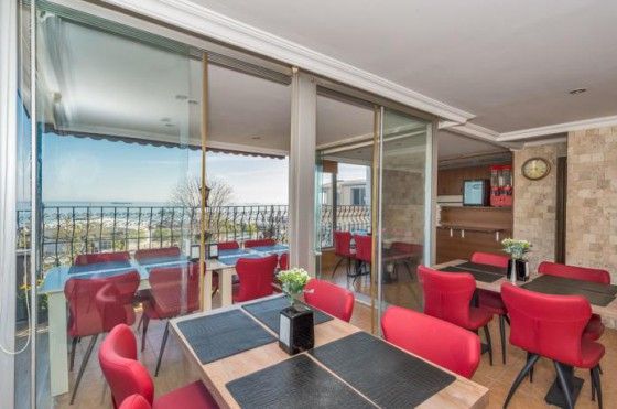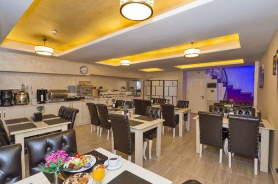 В зале для завтраков для гостей сервируют завтрак «шведский стол», включающий различные блюда турецкой кухни, приготовленные из местных продуктов. Здесь же после обеда или ужина гости могут заказать горячие напитки.