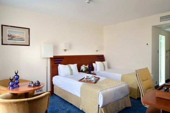 Всего в отеле 178 номеров. Во всех номерах кондиционер, спутниковое ТВ, телефон, сейф, мини бар, фен, принадлежности для чая/кофе, халаты, тапочки, косметические принадлежности. Standard - одна большая или 2 раздельные кровати, 22 кв.м. Executive - 2 комнаты, одна большая кровать, диван кровать, 55 кв.м.