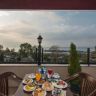 Ресторан в панорамным видом на город. Бар с прохладительными напитками.