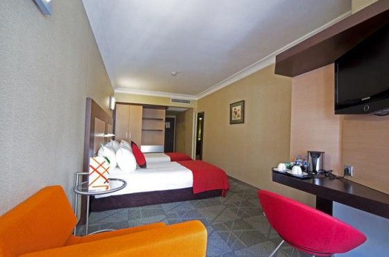 Во всех номерах кондиционер, спутниковое ТВ, телефон, сейф, мини бар, фен, Wi-Fi. Номера с одной большой или 2 раздельными кроватями, площадь 22-23 кв.м. Имеются смежные номера.