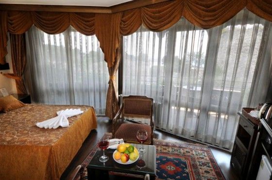 Всего в отеле 24 номера. Во всех номерах кондиционер, спутниковое ТВ, телефон, мини бар, фен, халаты. Из окон всех номеров открывается прекрасный вид на Босфор и дворец Топкапы. Standard - одна большая или 2 раздельные кровати, 15 кв.м. Deluxe - 2 односпальные кровати или 1 двуспальная кровать, 19 кв.м.