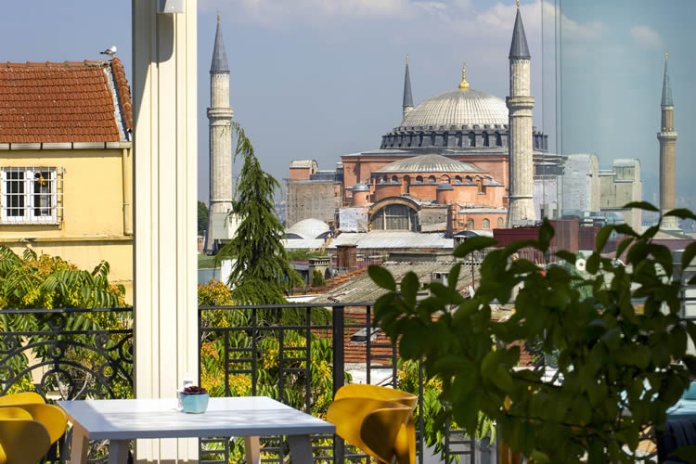 На обустроенной на крыше террасе c видом на собор Святой Софии ежедневно сервируют завтрак.
