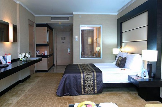 Всего в отеле 184 номера. Во всех номерах кондиционер, спутниковое ТВ, телефон, сейф, мини бар, фен, бесплатный Wi-Fi. Standard - 1 двуспальная кровать или 2 односпальные кровати, 26 кв.м. Superior - 2 односпальные кровати или 1 двуспальная кровать, 35 кв.м. Junior Suite - номер с гидромассажной ванной и отдельной гостиной. 1 большая двуспальная кровать и 1 диван-кровать, 50 кв.м. Corner Suite - номер с гостиной и мини-кухней. В ванной комнате установлена гидромассажная ванна. Гостям бесплатно подают завтрак в номер.1 большая двуспальная кровать и 1 диван-кровать, 70 кв.м. Suite - Самый просторный номер отеля располагает 1 гостиной и 1 спальней с террасой, гидромассажной ванной, душем и 2 туалетами. 135 кв.м.