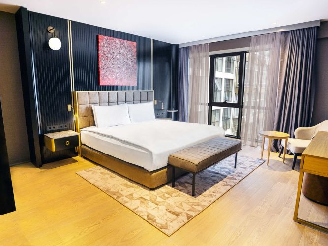 Двуспальная кровать king-size, просторная гостиная зона с диваном, ванная комната с ванной и душем, вид на город/площадь Таксим, доступ в эксклюзивный лаунж клуб Club Millésime;