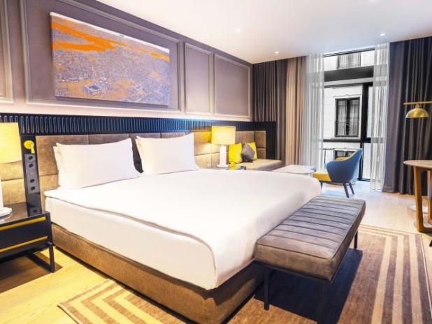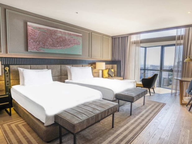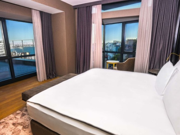 Номера расположены на верхних этажах, двуспальная кровать king-size или 2 односпальные кровати, гостиная зона с креслом, ванная комната с ванной или душем, вид на Босфор;