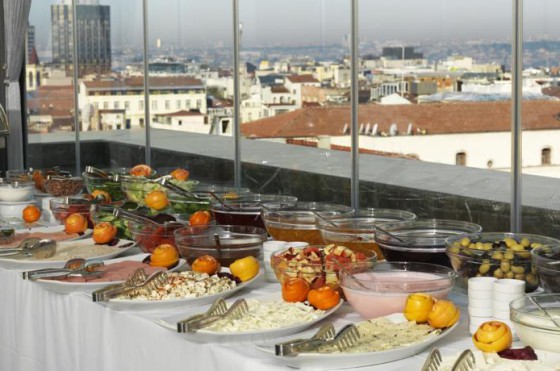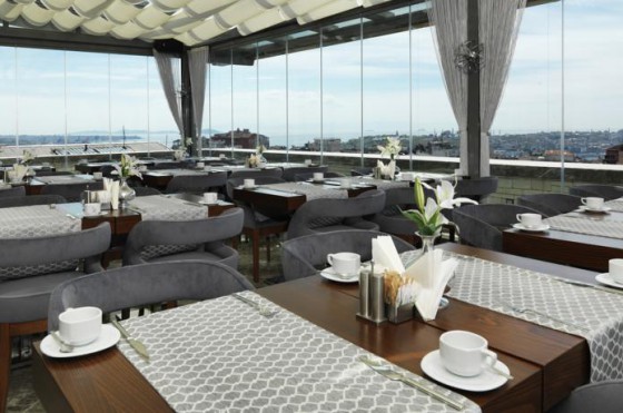 По утрам в отеле сервируется завтрак «шведский стол». С террасы ресторана открывается панорамный вид на город. Гостям предоставляется доставка еды и напитков в номер.
