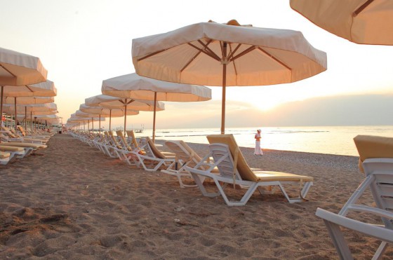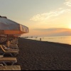 Собственный, песчано-галечный. Пляжные зонтики, шезлонги, матрасы, полотенца - бесплатно.