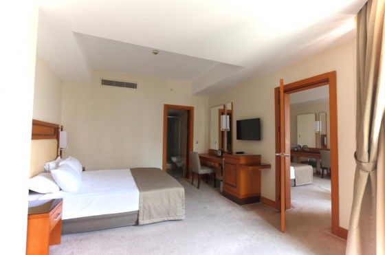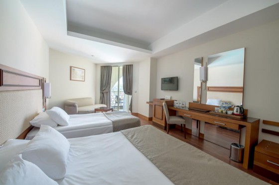 Всего в отеле 583 номера. Standard Room (34 кв.м, макс. 2+1/3 чел., вид на территорию/боковой вид на море) Family Room (50-57 кв.м, макс. 3+1/4 чел., 2 спальни, 2 ванные комнаты, вид на территорию/боковой вид на море) Standard Pool (26 кв.м, макс. 2 чел.) Family Pool (40-50 кв.м, макс. 2+1 чел., 17 номеров с межкомнатной дверью) Dublex Suite (85 кв.м, макс. 5+1/5 чел., двухуровневый номер) Economy (22 кв.м, макс. 2+1/3 чел., без балкона) Honeymoon Room (36 кв.м, макс. 2 чел.)