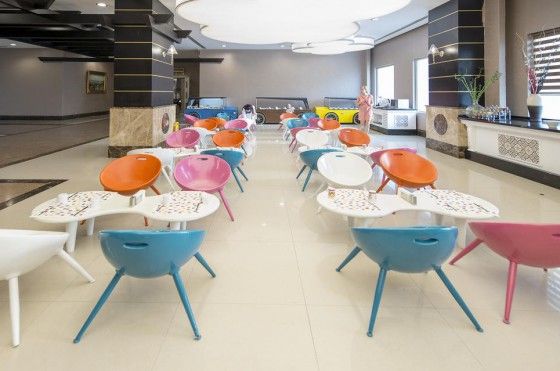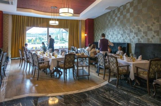 главный ресторан Su детский ресторан Kiddy (обед, ужин) 3 A La Carte ресторана: итальянский, турецкий, морепродукты (19:00-22:00, посещение 1 раз за время прибывания - бесплатно, по резервации) снэк-ресторан Adajio (турецкие лепешки гёзлеме, 12:00-16:00) бар у бассейна (12:00-16:00) ​бар на пляже (09:00-22:00) лобби-бар (16:00-00:00) диско-бар (23:30-02:30) спорт-бар (21:00-08:00) кондитерская (12:00-18:00) бистро A La Carte (24 часа, кроме 19:00-22:00)