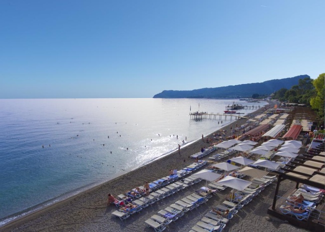 Отель Armas Beach расположен у подножия Таврских гор, на берегу моря, в 1 км от центра города Кемер. Аэропорт Анталии находится в 58 км.