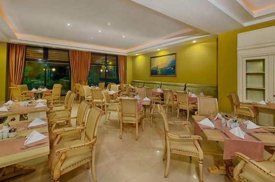 Отель работает по системе "Ультра Все Включено" главный ресторан (международная кухня, 850 чел., есть летняя терраса) 5 ресторанов A la Carte (19:00-21:30, платно, по резервации): Li Lou – китайская и японская кухни Portofino - итальянская кухня Hurrem - турецкая кухня Fish&Fish – рыбная кухня Al Afandi – ливанская кухня Бары: бар на пляже (10:00-17:00) бар у бассейна (10:00-00:00) Релакс-бар на пляже (11:00-16:00) лобби-бар (24 часа) диско-бар (23:00-02:00) шиша-бар (11:00-22:00) ирландский бар (10:00-23:00)