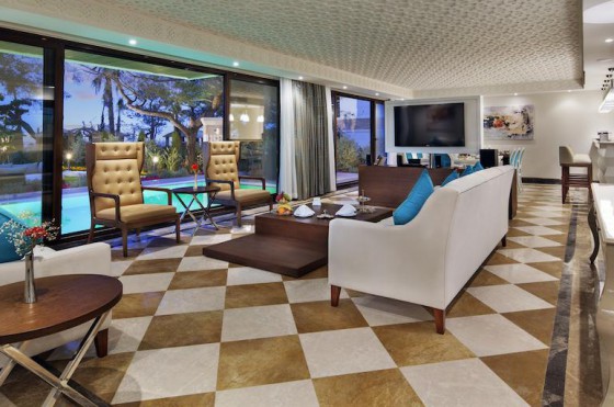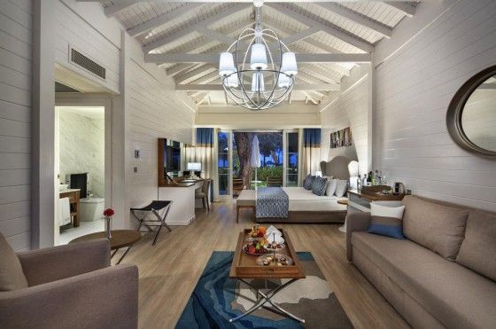 Grand deluxe beаch front suite (индивидуальный бассейн, вид на море или бассейн, гостиная с зоной столовой и мини-кухней, 2 спальни с дверью, 2 ванные, 2 террасы, 3 ТВ, макс. 5 чел., 129 м2)