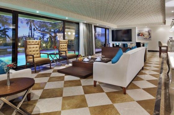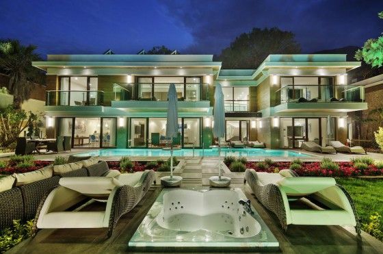 Villa Nirvana (индивидуальный бассейн, вид на море или бассейн, 6 ТВ, парная, турецкая баня, сауна, на 1 этаже: гостиная с зоной столовой и мини-кухней, 2 спальни с дверью, 2 ванные; на 2 этаже: 2 спальни с дверью, 2 террасы, 2 ванные, макс. 8 чел., 400 м2)
