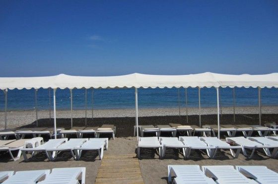 Собственный, песчано-галечный, в 1100 м от отеля, протяженность - 300 м. Пляжные полотенца, зонтики, шезлонги и матрасы на пляже и у бассейна - бесплатно. Шатлбас на пляж - бесплатно.