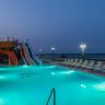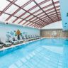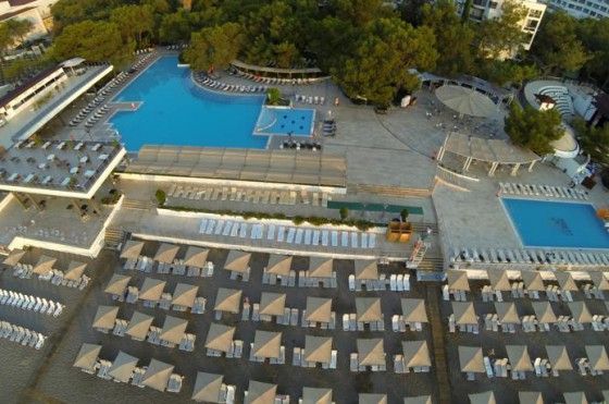 Анимация, турецкая баня, сауна, тренажерный зал, аэробика, и аквааэробика, теннисный корт, 4 шт, 2 с бетонным и 2 с кварцевым покрытием, настольный теннис, пляжный волейбол, мини-гольф, дартс, бильярд, открытые бассейны, 1150, 120 кв.м, крытый бассейн, 110 кв.м; работает в зависимости от погоды, водные горки, 2 шт, дискотека
