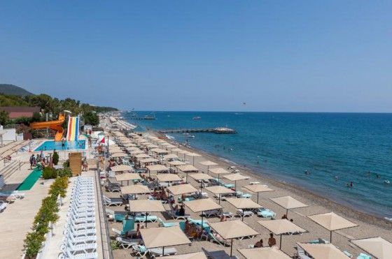 Собственный песчано-галечный пляж, протяженностью 150 метров. Пляжные полотенца, зонтики, матрасы и шезлонги – бесплатно.