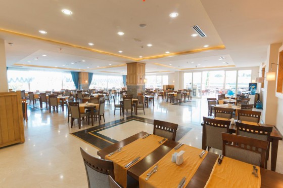 Главный ресторан – интернациональная кухня, крытый (180 чел.), с террасой (120 чел.). A'la carte рестораны (19:30-21:30, 20 USD, 1 раз в неделю - бесплатно) – турецкая и рыбная кухни. Бар на пляже (10:00 – 18:00, бесплатно). Бар в лобби отеля (10:00 – 23:30, бесплатно). Бар около бассейна (10:00 – 17:00, бесплатно). Кафе (17:00-18:00, бесплатно).