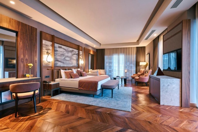К услугам гостей — просторные номера различных категорий, включая стандартные, семейные и виллы с частными бассейнами. Для детей предусмотрен большой развлекательный комплекс Rixy Kids Club с игровой зоной, детским аквапарком и разнообразными активностями по возрастам. Взрослым доступен современный фитнес-центр World Class, Anjana Spa с хамамом, массажами и уходовыми процедурами, а также обширная спортивная инфраструктура: теннисные корты, футбольное поле, площадки для групповых тренировок.