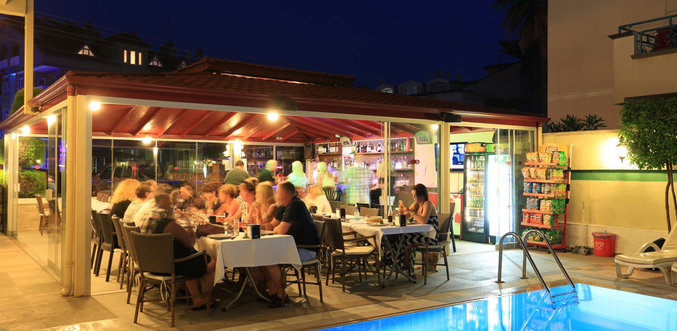 Отель расположен в 10 минутах ходьбы от пляжа и в 20 минутах от центра Мармариса. Прямо за отелем находится остановка автобуса, который идет до центра Мармариса и пляжа.