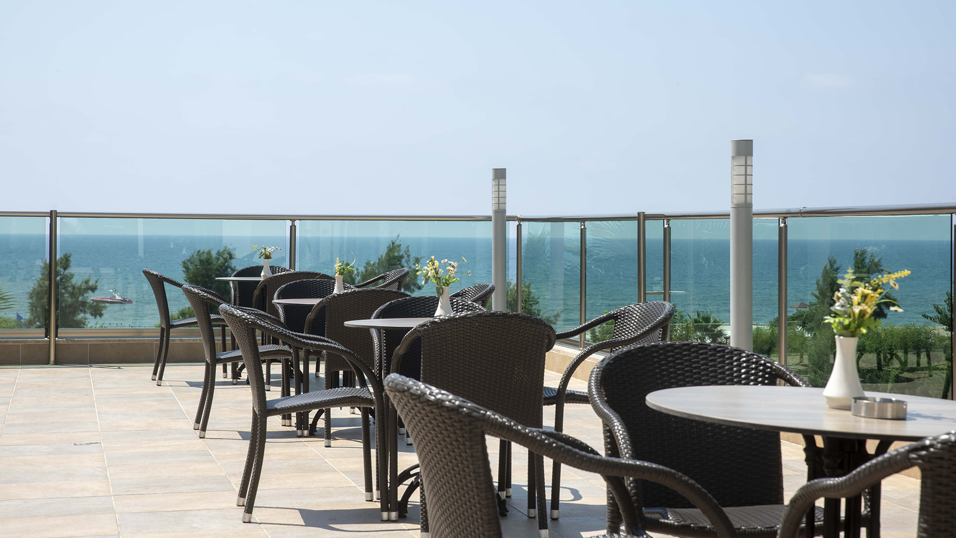 • частный песчано-галечный пляж (длина 100 м, сертификат Голубого флага);