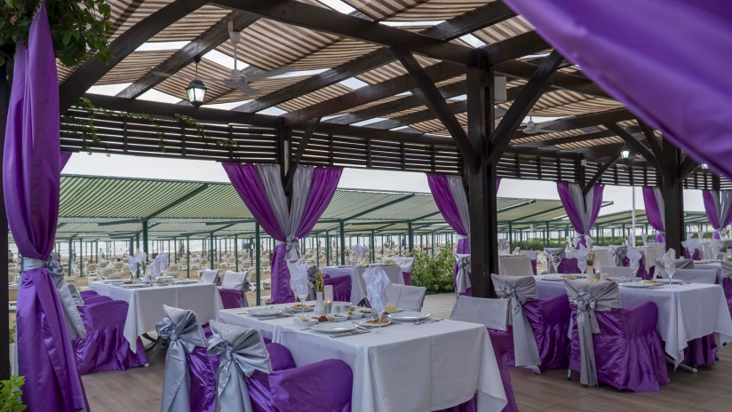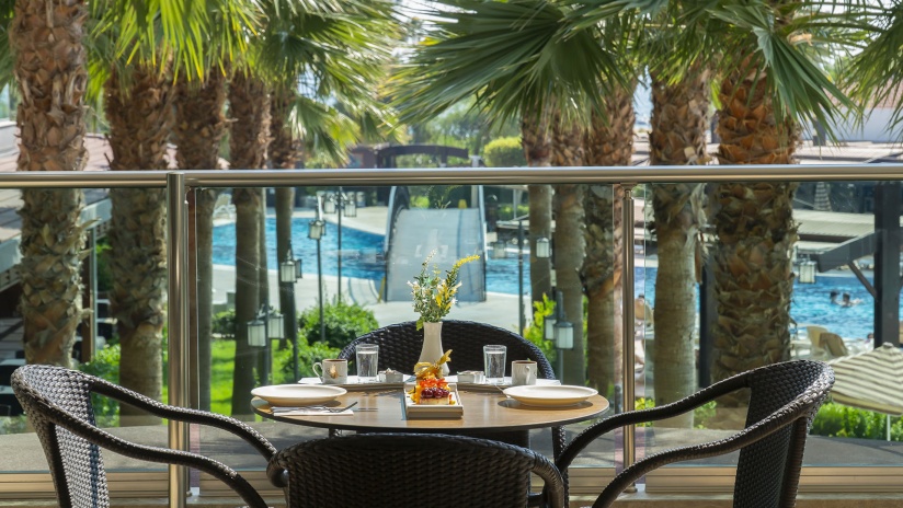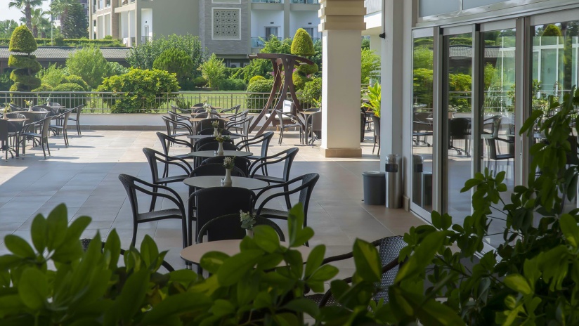 • основной ресторан «шведский стол» (1334 м²) внутри рассчитан на 640 мест, терраса на 400 мест, международная кухня;