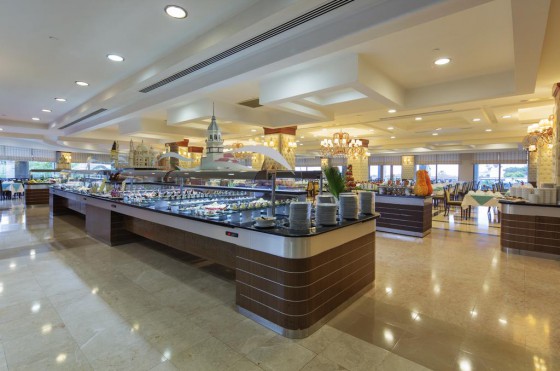 2 основных ресторана - в каждом из них открытая секция рассчитана на 150 чел, закрытая на 300 чел 3 A'la Carte ресторана: турецкий, кубинский, рыбный (по предварительной резервации) 3 бара