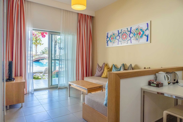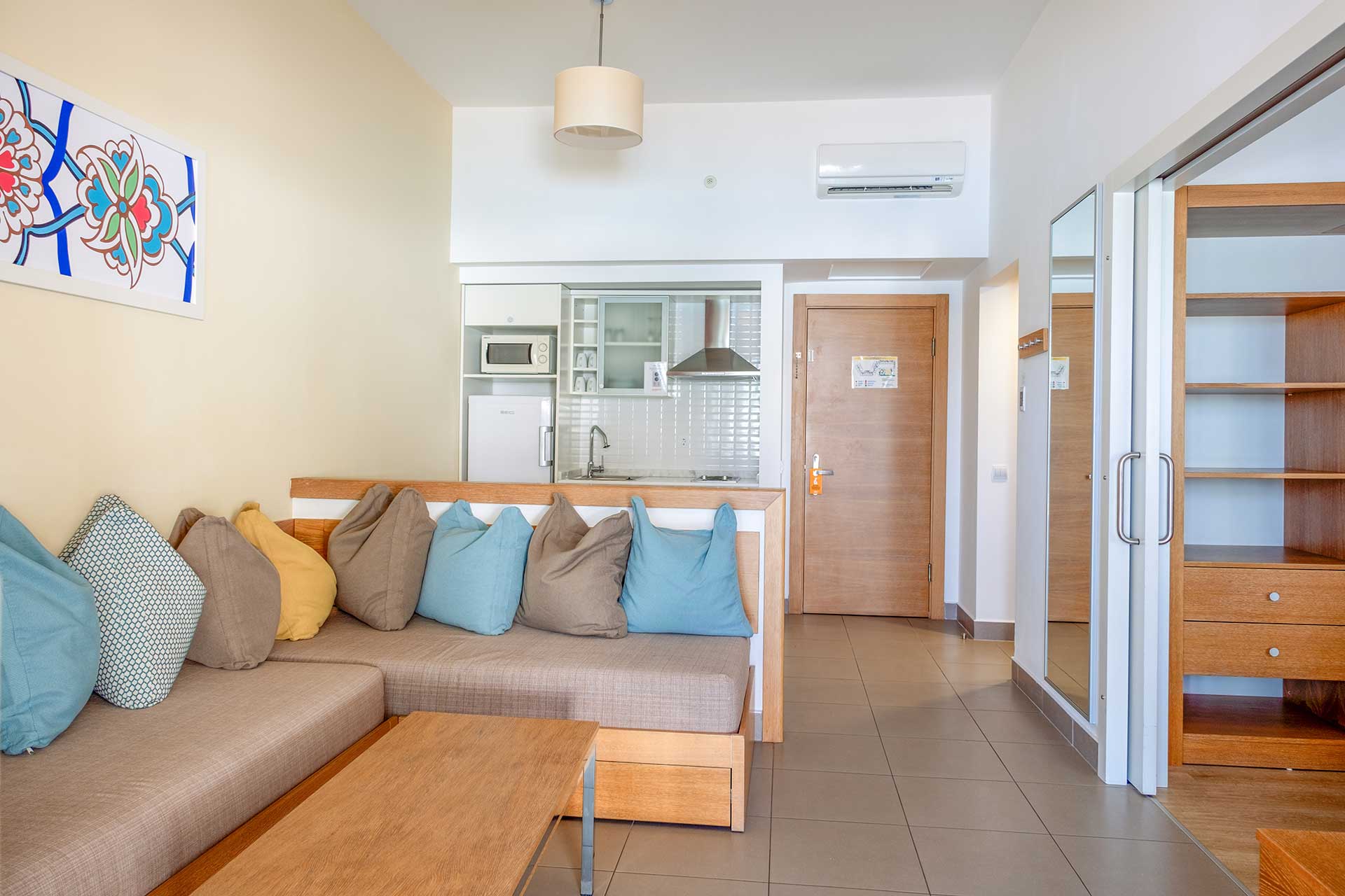 В номерах: набор для приготовления чая/кофе, микроволновая печь, холодильник, тостер, плита, чайник, Wi-Fi, телефон, сейф, телевизор, 1 пляжное полотенце на человека, фен, кондиционер.