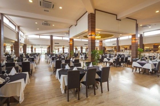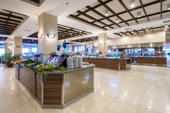 Основной ресторан Sofra - закрытая секция на 1100 и терраса на 300 чел, Аква-снэк ресторан, бич-снэк ресторан 8 баров 3 A’la Carte ресторана: рыбный, мексиканский, китайский(по предварительной резервации)