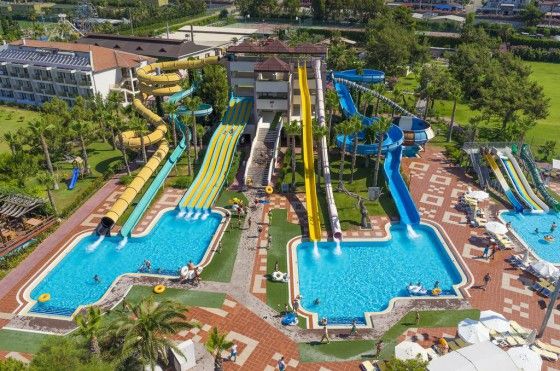 Большой бассейн с водопадом, полу олимпийский бассейн, релакс бассейн, большой аквапарк с 14 горками и 1 большим бассейном с 4 джакузи, лунапарк для взрослых и детей, 5 теннисных кортов (твердое покрытие), 1 футбольное поле (90*60 кв.м.)