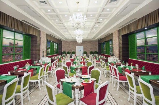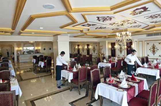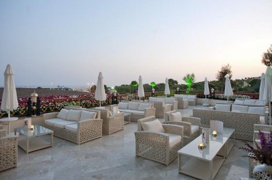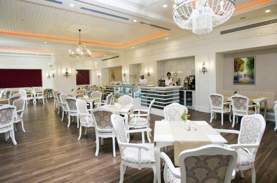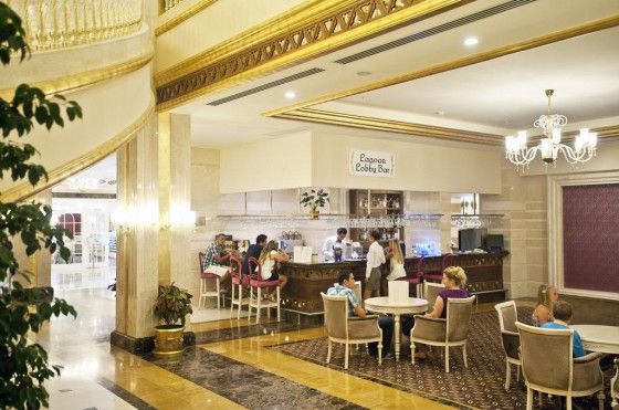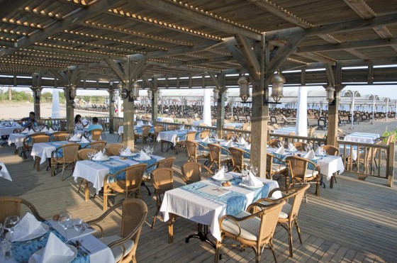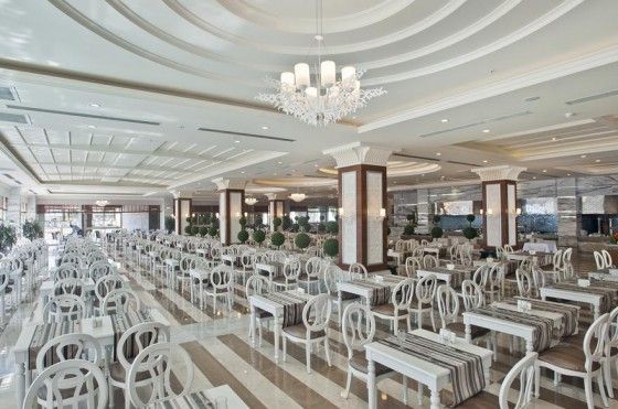 главный ресторан - интернациональная кухня, 850 чел, крытый, с террасой. 5 A la Сarte ресторанов (турецкий, мексиканский, китайский, рыбный и итальянский, 18:30-21:00) бар на пляже (10:00-18:00) бар у бассейна (10:00-18:00) лобби-бар (10:00-00:00) кафе (11:00 - 18:00) диско-бар (23:00-02:00) бар Irish (20:00-00:00) бар Terrace (18:00-00:00) бар Lagoon (24 часа)