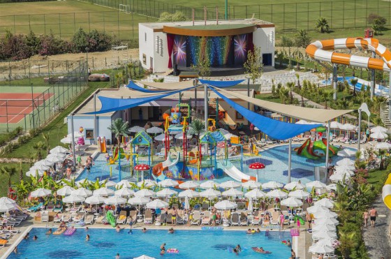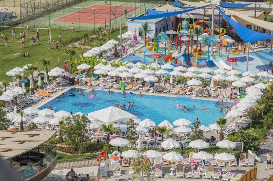 6 открытых бассейнов релакс-бассейн (вход 18+) ​аквапарк (10 водных горок) крытый бассейн Wellness-центр тренажерный зал фитнес-центр анимация аквааэробика живая музыка теннисный корт теннисный инвентарь (депозит) дартс настольный теннис водные виды спорта (платно)
