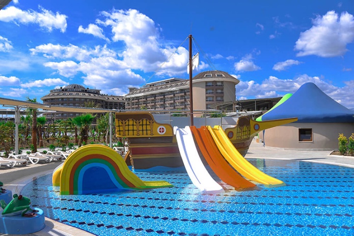 Sunmelia Beach Resort в Сиде – это хороший вариант для семейного отдыха. Современные интерьеры, большой аквапарк. У отеля небольшая территория, но развитая инфраструктура для активного отдыха.