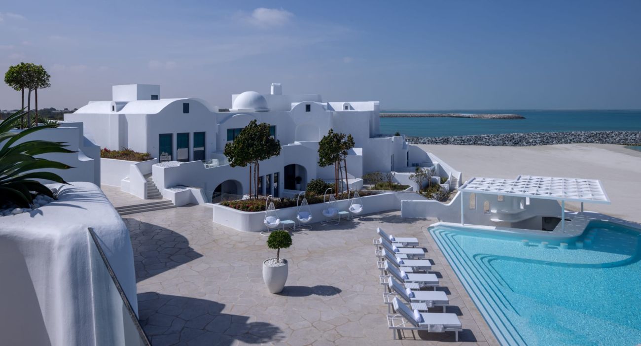 Отель Anantara Santorini Abu Dhabi Retreat, вдохновленный греческим островом, с видом на море из каждой комнаты и полной конфиденциальностью для каждого гостя, расположился на участке живописной береговой линии между Дубаем и Абу-Даби. К услугам гостей открытый бассейн, спа-центр, 2 ресторана, конференц-зал.