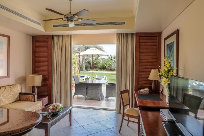 Двуспальная или 2 односпальные кровати, гостиная зона с креслами, ванная комната с ванной, вид на залив;
