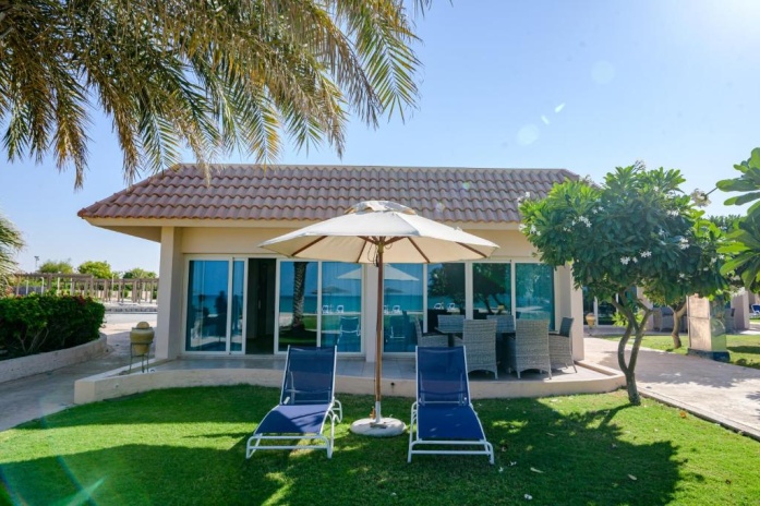 Пляжные шале расположены на берегу, двуспальная кровать или 2 односпальные кровати, гостиная зона с креслом, ванная комната с ванной, терраса, патио, вид на залив;