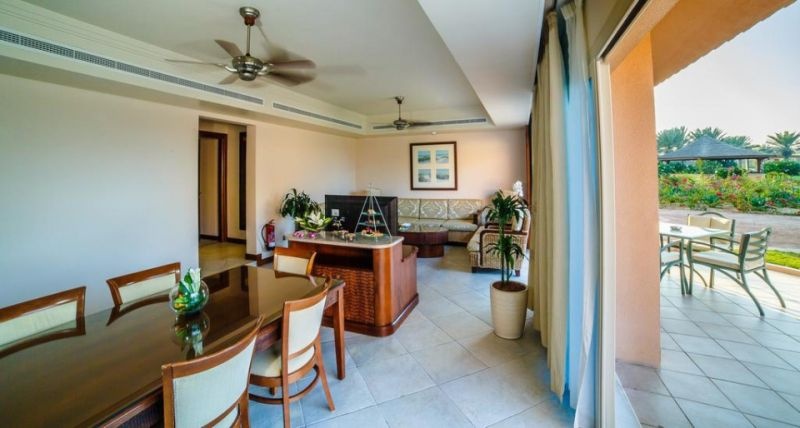 2 спальни: двуспальная и 2 односпальные кровати, отдельная гостиная комната с диваном, кухней и обеденной зоной, ванная комната с ванной и душем, терраса;