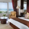Двуспальная или 2 односпальные кровати, гостиная зона с креслами или диваном-софа, ванная комната с ванной, балкон, вид на залив;