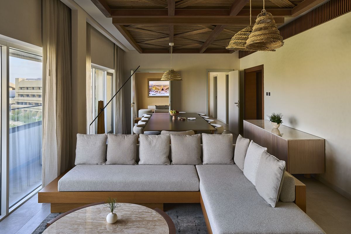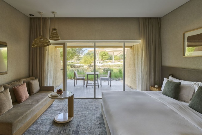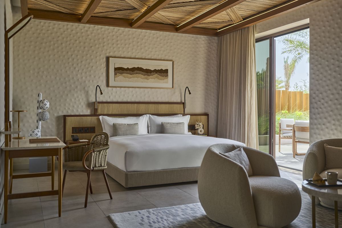 Спальня с двуспальной кроватью, отдельная гостиная комната с обеденной зоной, кладовая, ванная комната с душевой кабиной и отдельной ванной, балкон, вид на сад курорта Аль Фай, дополнительная кровать предоставляется по запросу, доступ в эксклюзивный клубный лаунж Al Rayeh, услуги батлера;