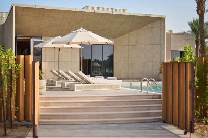 2 спальни: двуспальная кровать и 2 односпальные кровати, гостиная комната с обеденной зоной, 2 ванные комнаты с душевой кабиной и отдельной ванной, душ под открытым небом, гостевой туалет, терраса с обеденной зоной, шезлонгами на открытом воздухе и частным пляжным домиком, частный бассейн, вид на море, прямой доступ к пляжу, доступ в эксклюзивный клубный лаунж Al Rayeh, услуги батлера;