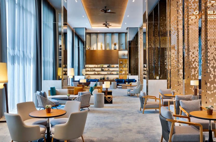 На территории работает открытый бассейн с террасой для отдыха, тренажёрный зал, спа-зона и несколько ресторанов и баров с международной кухней. Предусмотрены условия для семейного размещения, а также залы для мероприятий и деловых встреч.