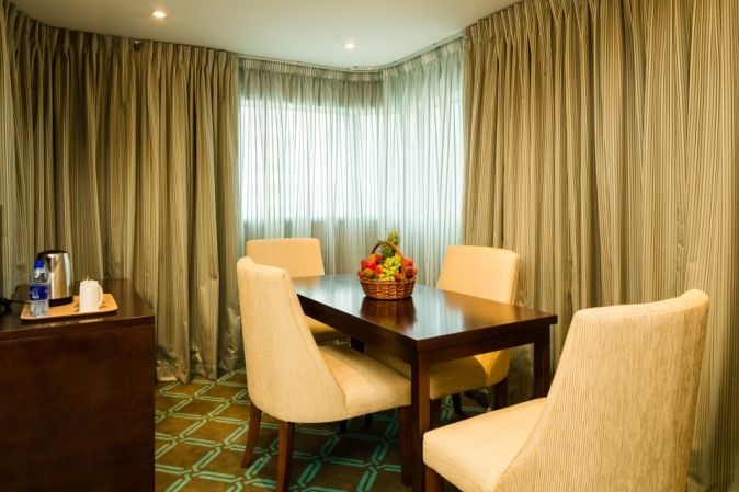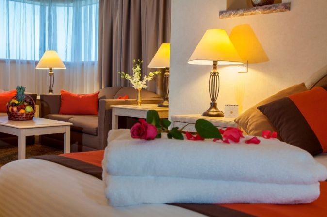В номерах: Wi-Fi, телевизор со спутниковыми каналами, мини-бар, фен, сейф, набор для приготовления чая/кофе, IDD телефон, халат, тапочки, кондиционер.