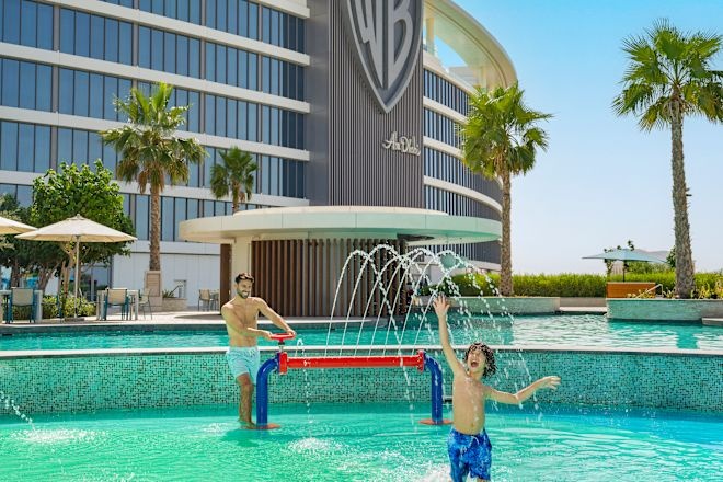 The WB Abu Dhabi, Curio Collection by Hilton – тематический отель, посвящённый культовым персонажам и фильмам Warner Bros. Отель наполнен атмосферой киностудии Warner Bros., с элементами декора и интерьерами, вдохновленными популярными фильмами и сериалами. В отеле есть семейный бассейн и бар у бассейна The Matinee, а также панорамный бассейн Overlook на 7 этаже, открытый только для взрослых. А в тематических ресторанах The Director’s Club, The Overlook и Sidekicks подают разнообразные блюда в необычной атмосфере, отражающей кинотематику Warner Bros.