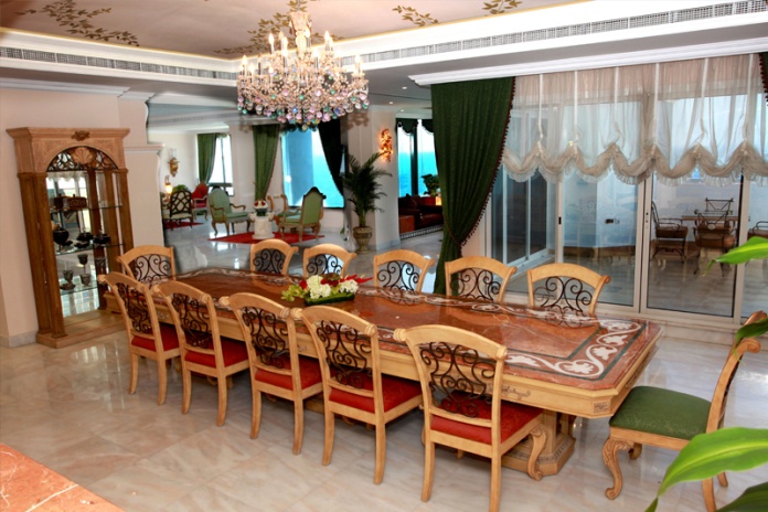 Расположен на 13 этаже с панорамным видом на Аравийское море, 4  большие спальни, в главной спальне есть ванная комната с джакузи, просторная гостиная комната, полностью оборудованная кухня и столовая, терраса, 2 балкона, площадка для барбекю.