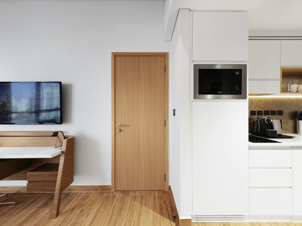В номерах: утюг (по запросу), стиральная машинка, кофемашина, плита, микроволновая печь, холодильник, чайник, кухонные принадлежности, халат, тапочки, фен, банные принадлежности, телевизор, сейф, кондиционер, зеркало для макияжа, телефон с голосовой почтой, Wi-Fi.