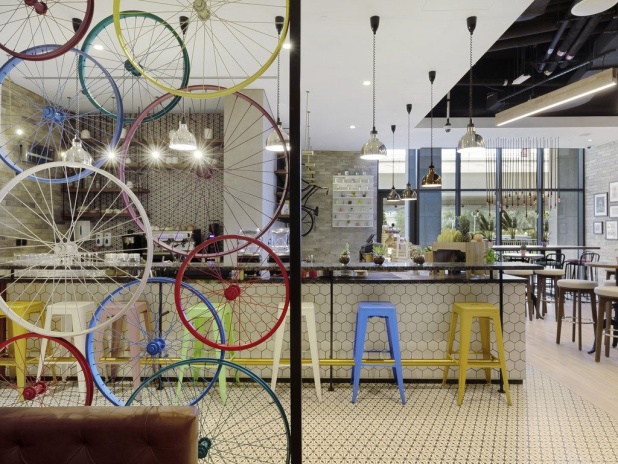 • ресторан-кафе Fixie работает в течение всего дня и оформлен в индустриальном современном стиле (международная кухня, вместимость на 100 посадочных мест).