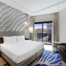 Открытая планировка номера, двуспальная кровать king-size или 2 односпальные кровати, полностью оборудованная кухня, ванная комната с душем, балкон, вид на море или город.