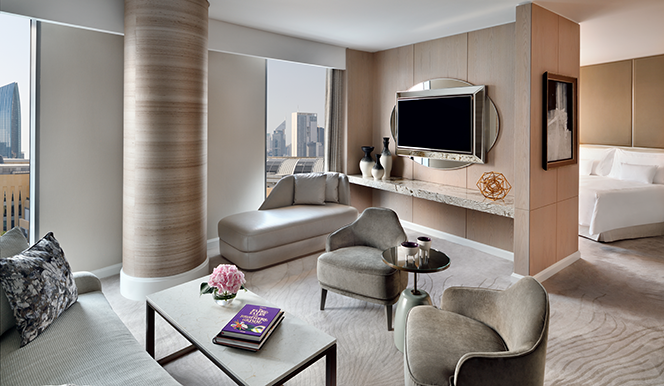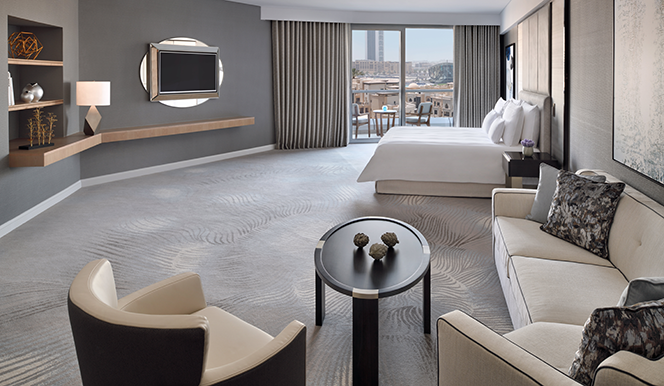 Спальня с двуспальной кроватью king-size, ванная комната с ванной и душем, отдельная гостиная комната, зона гардеробной со встроенным шкафом и туалетным столиком, балкон, эксклюзивный доступ в клубный лаунж, бесплатный поздний выезд в 16:00, бесплатные услуги глажки: 1 рубашка и 1 костюм за весь период проживания;